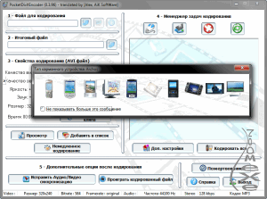 PocketDivXEncoder — удобное средство, которое поможет преобразовать видео клип в формат мобильно или переносного устройства, такие как мобильные телефоны, карманные компьютеры.