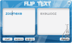 Flip Text — маленькая бесплатная программка, которая может перевернуть любой текст вверх тормашками, например вот вам наглядный пример переворота: набираем в окне программы zoomexe.net – получаем по нажатию кнопочки ʇǝu˙ǝxǝɯooz. Думайте сами, где это может пригодиться, может быть где-нибудь свой логин таким образом написать, знакомые поломают голову, как вы это сделали. Flip Text может переворачивать любые символы.