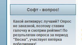 Решил выкладывать результаты голосований «Лучший антивирус сезона», за прошлые периоды. Это будет своего рода отчёт. Может кому-то будет интересно, то – пожалуйста...