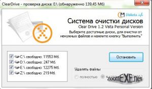 Clear Drive Vista — программа для очистки вашей системы от ненужных файлов, которых в системе, за время использования может накопиться приличное количество.