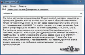 Errorer Home — небольшая бесплатная программа, которая поможет произвести Вам анализ кода ошибки выводимый вследствие системного сбоя на так называемом «синем экране смерти». Также программа предоставит информацию о системных процессах, не «богатую», но если нет под рукой доступа в Интернет, то программа придётся очень кстати.
